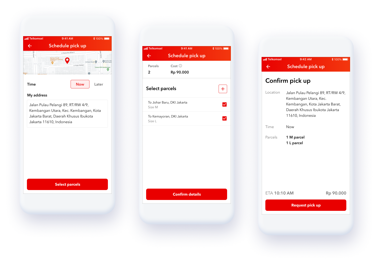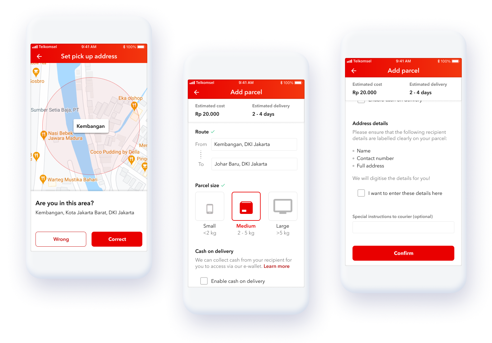 This public app was available to users in Jakarta, Indonesia that need next-day non-international delivery services without traveling to a post office. Small business owners were an important group because of the frequent, low-volume delivery services they need.