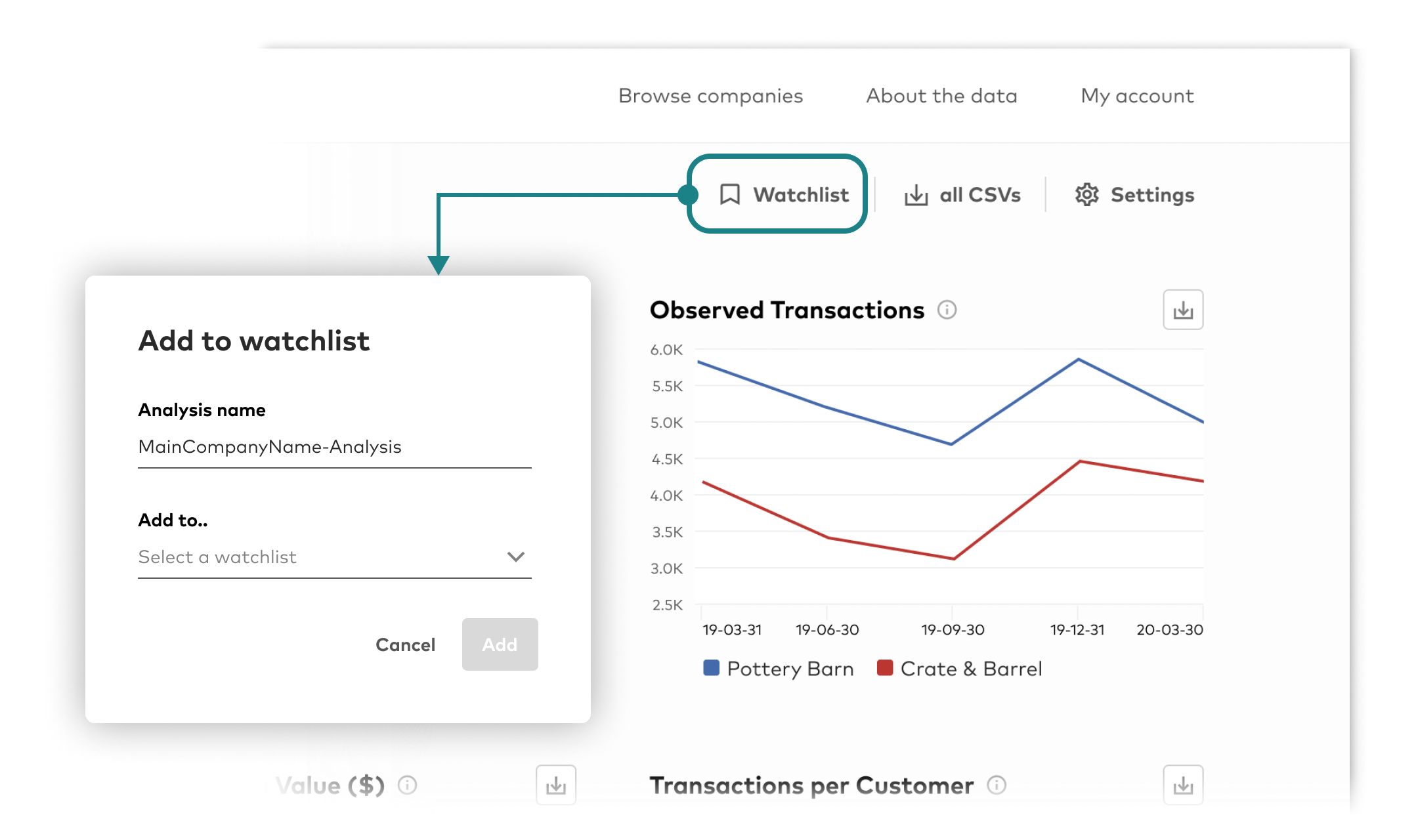 During the process of resolving reported pain points from subscribers about applying complex filters on data analyses, my design team also identified related issues from other stakeholders. Working through technical constraints, we produced a new watchlist feature and updated the homepage. Subscribers can save their filtered analyses and access them quickly via the new homepage. Internal teams also gained access to subscriber insights through a new user analytic source created with this feature.